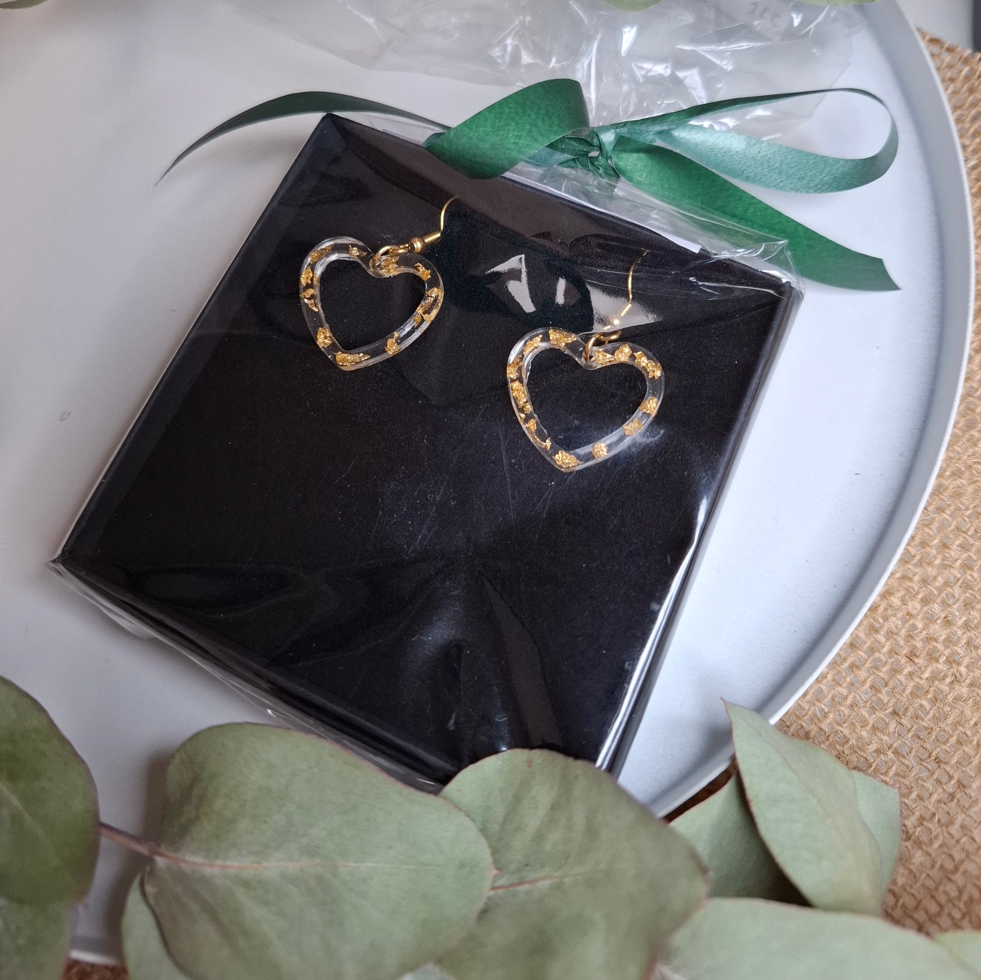 ✨️ Käsintehdyt hartsista - hartsiin upotettu lehtimetallia kullan ja hopean väreissä.
